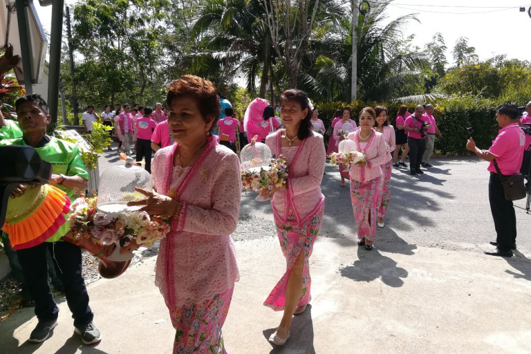 บรรยากาศการแถลงข่าวมีการจำลองขบวนแห่ขันหมากคู่บ่าวสาว ซึ่งใช้มาสคอทพะยูนสีฟ้าเป็นเจ้าบ่าวชื่อน้องมงคล และใช้มาสคอทพะยูนสีชมพูเป็นเจ้าสาวชื่อน้องมาลัย โดยมี นายขจรศักดิ์ เป็นญาติผู้ใหญ่ ตามด้วยชุดกลองยาวสวมผ้าไทย และขบวนขันหมาก จำนวน 9 ขัน เพื่อสร้างสีสันและความสนุกสนาน นอกจากนั้น หลังจากการแถลงข่าวเสร็จสิ้น ยังได้มีการจำลองพิธีรดทรายสังข์ให้แก่มาสคอทพะยูนเจ้าบ่าว และมาสคอทพะยูนเจ้าสาว