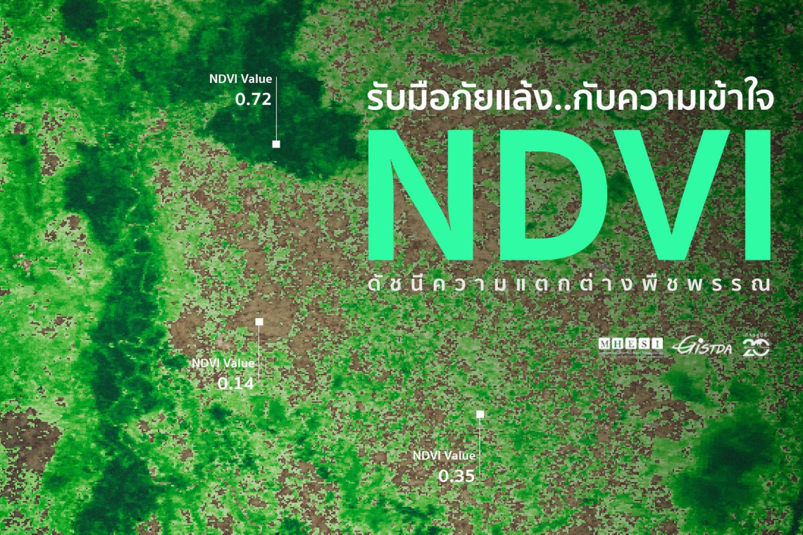 กระทรวงการอุดมศึกษา วิทยาศาสตร์ วิจัย และนวัตกรรม โดยสำนักงานพัฒนาเทคโนโลยีอวกาศและภูมิสารสนเทศ (องค์การมหาชน) หรือ จิสด้า โพสต์ผ่านเฟสบุ๊คแฟนเพจ ซึ่งอาศัยข้อมูลอ้างอิงจาก https://earthobservatory.nasa.gov/ ว่า Normalized Difference Vegetation Index (NDVI) หรือ ดัชนีความแตกต่างพืชพรรณ เป็นหนึ่งในตัวบ่งชี้ถึงพื้นที่ภัยแล้งที่ได้มาจากการคำนวณค่าการสะท้อนในภาพถ่ายจากดาวเทียม ซึ่ง NDVI นิยมใช้กันอย่างแพร่หลายจากพื้นฐานความสัมพันธ์ที่ว่า “บริเวณที่เกิดสภาวะภัยแล้ง มักจะส่งผลต่อความสมบูรณ์ของพืช” แต่ทว่า แค่ฟังจากชื่อดัชนีก็เริ่มงงแล้ว อาจจะมีหลายคำถามต่อมาว่า แล้วอะไรแตกต่าง? และความแตกต่างนั้นไปเกี่ยวข้องกับภัยแล้งอย่างไร?