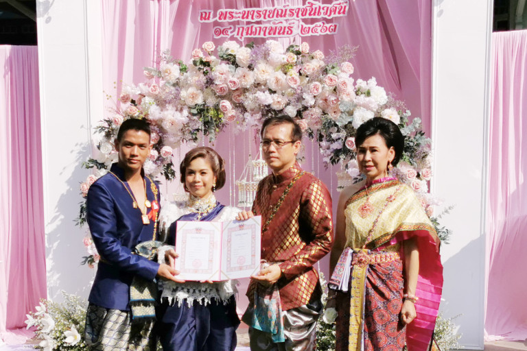 คู่รักหนุ่มสาวแต่งไทย “ย้อนยุค” จดทะเบียนสมรสวันวาเลนไทน์ อีกกิจกรรมหนึ่ง “งานแผ่นดินสมเด็จพระนารายณ์” ครั้งที่ 33 จังหวัดลพบุรี