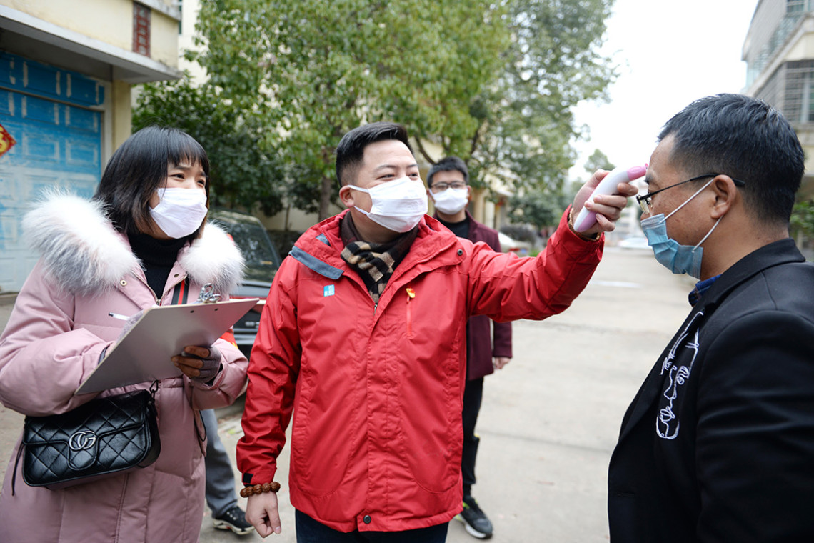 เมื่อวันที่ 3 กุมภาพันธ์ 2020 ในหมู่บ้านหัวยวน เขตฮัยปู เมืองกาวอัน จังหวัดเจียงซี ทีมอาสาสมัครประกอบด้วยสมาชิกพรรคหมู่บ้านและทีมแพทย์มืออาชีพได้ส่งเสริมการป้องกันและควบคุมความรู้ให้ครัวเรือนยากจน Xiong Huiming