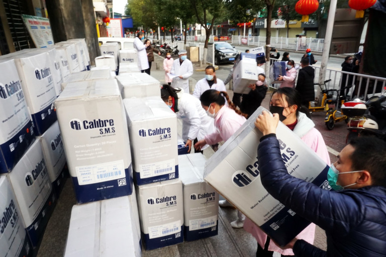 15 กุมภาพันธ์ 2563 13:00 น. สยามรัฐออนไลน์ Reading China + วันที่ 2 กุมภาพันธ์ 2020 เจ้าหน้าที่ของศูนย์ควบคุมและป้องกันโรคเขตหลี่หยาง เมืองเสหยาน มณฑลหูเป่ยได้รับชุดป้องกันทางการแพทย์ 3,000 ชุด ที่บริจาคจากมูลนิธิความรักแห่งมหาวิทยาลัยเศรษฐศาสตร์และการเงินปักกิ่ง