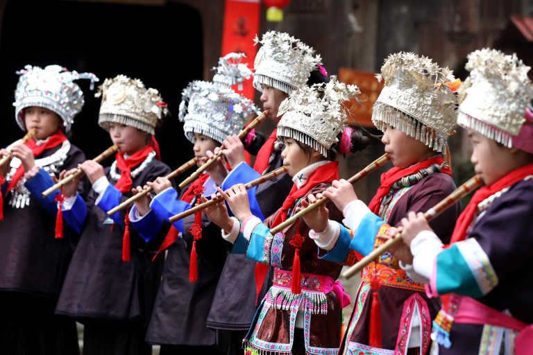 เมื่อวันที่ 18 มกราคม 2020 เทศกาลวัฒนธรรมเพลงขลุ่ยตงครั้งแรกจัดขึ้นในหมู่บ้านเกาติ้ง เมืองดูตง เขตปกครองตนเองตงโจวตง เมืองหลี่โจว มณฑลกวางสี ชาวบ้านเฉลิมฉลองตรุษจีนด้วยกิจกรรมประเพณีหลากหลาย เช่นเพลงขลุ่ย การเต้นรำตัวเย การร้องเพลงขวน งานเลี้ยงร้อยครอบครัวและอื่นๆ พวกเขาต้อนรับตรุษจีนอย่างดีอกดีใจ