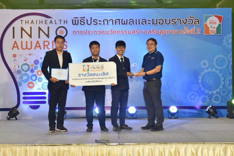 สำนักงานกองทุนสนับสนุนการสร้างเสริมสุขภาพ (สสส.) ประกาศผลรางวัลโครงการประกวดนวัตกรรมสร้างเสริมสุขภาพ : THAIHEALTH INNO AWARDS ครั้งที่ 2 โดยมีสุดยอดผลงานของเยาวชนไทยทั้งในระดับมัธยมศึกษาและอาชีวศึกษา ที่นำความคิดสร้างสรรค์มาพัฒนาเป็นนวัตกรรมที่ตอบโจทย์การสร้างเสริมสุขภาพให้เกิดขึ้นในสังคมไทย ซึ่งผ่านการคัดเลือก เข้าสู่รอบสุดท้ายทั้งหมด 18 ผลงาน จากทั้งหมด 132 โครงการ ณ ห้อง 201 อาคารศูนย์เรียนรู้สุขภาวะ สำนักงานกองทุนสนับสนุนการสร้างเสริมสุขภาพ (สสส.) กรุงเทพฯ