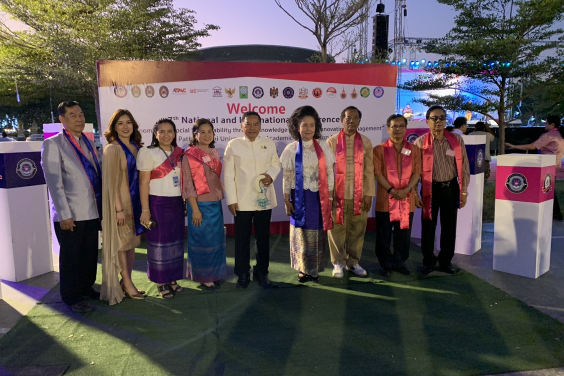 ด้าน ตร.ชนากานต์ ยืนยง อธิการบดีมหาวิทยาลัยปทุมธานี กล่าวว่าการประชุมวิชาการและนำเสนอผลงานวิจัยระดับชาติและนานาชาติ ครั้งที่ 7 ประจำปี 2563 ณ มหาวิทยาลัยปทุมธานรในวันนี้ขอบคุณคณะกรรมการภาคีเครีอข่ายทั้ง 18 สถาบัน ทั้งในและต่างประเทศทุกท่านเป็นอย่างสูง ที่ให้มหาวิทยาลัยปทุมธานีได้มีโอกาสต้อนรับทนอย่างอบอุ่นและประทับใจการจัดประชุมวิชาการระดับชาติและนานาชาติ ครั้งที่ 7 ประจำปี 2563 ในครั้งนี้ เป็นกิจกรรมทางวิชาการที่จะช่วยส่งเสริมและสนับสนุนให้เกิดการแลกเปลี่ยนเรียนรู้องค์ความรู้ที่ได้จากการวิจัยในหลากหลายสาขาอาชีพ ไม่ว่าจะทางด้านวิทยาศาสตร์และเทคโนโลยี สังคมศสตร์ บริหารธุรกิจ ตลอดรวมถึงการสร้างเครือข่ายการวิจัยและความร่วมมือทางวิชาการในมิติต่าง ๆ ที่จะนำไปการนำผลงานวิจัยไปใช้ประโยชน์อย่างยั่งยืน
