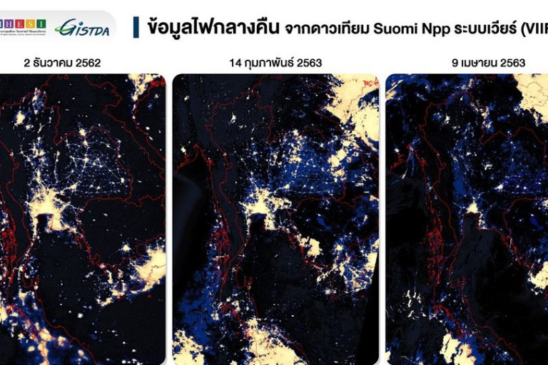 GISTDA สำนักงานพัฒนาเทคโนโลยีอวกาศและภูมิสารสนเทศ (องค์การมหาชน) โพสต์เฟซบุ๊กระบุ โควิด-19 ที่มาพร้อมกับการเปลี่ยนแปลงในยามค่ำคืน