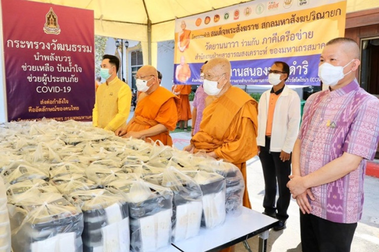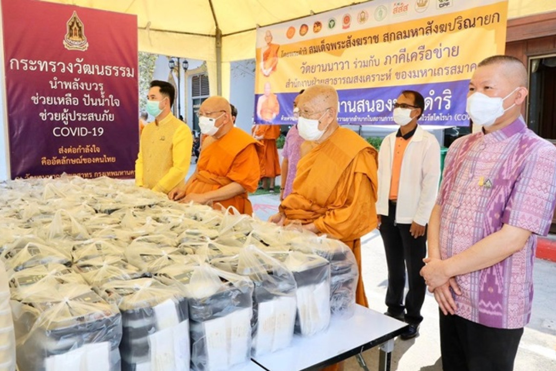 นายกฤษศญพงษ์ ศิริ ปลัดกระทรวงวัฒนธรรม (วธ.) กล่าวว่า วธ.ร่วมกับวัดยานนาวาจัดกิจกรรมวัฒนธรรมนำพลังบวรช่วยเหลือผู้ที่ได้รับผลกระทบในสถานการณ์แพร่ระบาดของโรคติดเชื้อไวรัสโคโรนา 2019 ประจำปีงบประมาณ 2563 เฉลิมพระเกียรติ โดยสนับสนุนการจัดตั้งโรงทานตามพระบัญชาสมเด็จพระสังฆราช แจกจ่ายอาหารให้กับประชาชนที่ได้รับผลกระทบในพื้นที่เขตยานนาวาและพื้นที่ใกล้เคียง ซึ่งมีประชาชนเข้ารับของแจกจำนวนมาก ส่วนใหญ่ตกงาน ไม่มีรายได้ ทั้งนี้คณะผู้บริหารวธ.ได้เข้าสักการะ สมเด็จพระมหาธีราจารย์ (ปสฤทธิ์ เขมฺงกโร) เจ้าอาวาสวัดยานนาวา กรรมการมหาเถรสมาคม ซึ่งได้รับทราบว่าสมเด็จพระมหาธีราจารย์มีเมตตาให้ชาวบ้านที่ได้รับผลกระทบมารับอาหารที่วัด พร้อมกันนี้ยังมุ่งสร้างความเข้าใจกับชุมชนในพื้นที่ กรณีพบว่ามีผู้ที่มีความเสี่ยงติดเชื้อโควิด-19 ต้องกักกันตัวเองระยะเวลา 14 วัน ทางวัดพร้อมเปิดอาคารภายในวัด ให้เป็นที่พักกักตัวได้ เพื่อลดความหวาดกลัวหวาดระแวงของชาวบ้านในชุมชน ลดการตีตราผู้มีความเสี่ยงติดเชื้อ และเพื่อเป็นการสกัดกั้นการระบาดในวงกว้าง