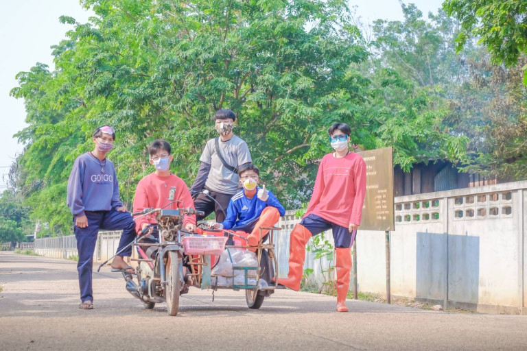 เช่นเดียวกับ กลุ่มเด็กแว้นจิตอาสาบ้านก่อ ต.หนองสนม อ.วานรนิวาส จ.สกลนคร ที่รวมตัวกันไปให้ความรู้การล้างมือที่ถูกต้องให้คนเฒ่าคนแก่ที่มาวัดในวันพระ นอกจากนี้ยังร่วมกับสมาชิกในชุมชน ร่วมกันทำความสะอาดศาลาวัดด้วยน้ำยาฆ่าเชื้อ โดยกลุ่มเด็กแว้นจิตอาสา ยังขอเป็นแกนนำหลักในการช่วยกระจายน้ำยาฆ่าเชื้อ โดยอาสาขี่รถจักรยานยนต์ไปรับขวดเปล่าจากทุกๆ บ้าน เพื่อมามาบรรจุน้ำยาแล้วนำไปให้ชาวชุมชน 360 หลังคาเรือน เพื่อใช้ในการทำความสะอาด