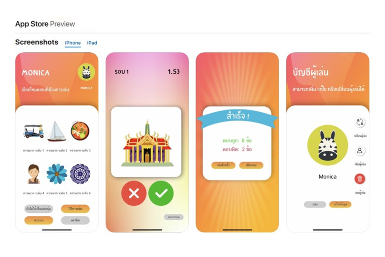 ดร.ศราวุธ เลิศพลังสันติ และ ดร.สิทธา สุขกสิ ทีมวิจัยห้องปฏิบัติการการออกแบบและแก้ปัญหาอุตสาหกรรม ศูนย์เทคโนโลยีโลหะและวัสดุแห่งชาติ (เอ็มเทค) สำนักงานพัฒนาวิทยาศาสตร์และเทคโนโลยีแห่งชาติ (สวทช.) ได้คิดค้นและออกแบบแอปพลิเคชันเกมฝึกสมอง หรือ MONICA (โมนิก้า) เพื่อเป็นอีกทางเลือกช่วยให้สมองถูกใช้งานผ่านรูปภาพ ไอคอนต่างๆ อยู่บนสีสันที่เหมาะสมกับผู้สูงอายุได้ฝึกฝนด้านความจำอย่างต่อเนื่องเพื่อเป็นการชะลอภาวะสมองเสื่อม