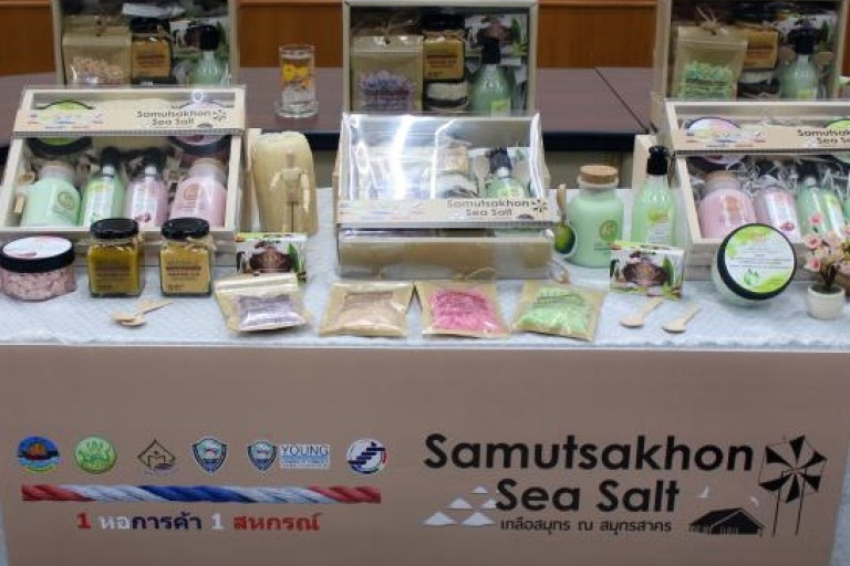 ด้าน นายชาธิป ตั้งกุลไพศาล รองประธานหอการค้าจังหวัดสมุทรสาคร กล่าวว่า หอการค้าจังหวัดสมุทรสาคร ได้เล็งเห็นความสำคัญของเกลือ ซึ่งเป็นสินค้าหลักและมีแหล่งกำเนิดมาจากจังหวัดสมุทรสาคร จึงได้เลือกเกลือทะเลเป็นเป้าหมายหลักในการพัฒนาเพื่อช่วยเหลือสมาชิกสหกรณ์ 2 แห่ง คือ สหกรณ์การเกษตรนาเกลือสมุทรสาคร จำกัด และสหกรณ์กรุงเทพ จำกัด โดยใช้ปัจจัยสำคัญคือ “การระเบิดจากภายใน” โดยนำความเดือดร้อนในการประกอบอาชีพของประชาชนในจังหวัดสมุทรสาคร มาเป็นโจทย์ในการแก้ปัญหาร่วมกัน ประกอบด้วยหน่วยงานต่างๆ ทั้งภาครัฐและภาคเอกชน ขับเคลื่อนร่วมกันแต่ขอให้ทุกฝ่ายมีความจริงใจและตั้งใจในการแก้ปัญหาร่วมกัน จนเกิดผลิตภัณฑ์ “Samutsakhon Sea Salt” จากโครงการ 1 หอการค้า 1 สหกรณ์การเกษตร จังหวัดสมุทรสาคร ออกสู่ผู้บริโภคในขณะนี้