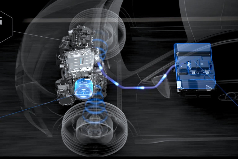 ภายใต้การขับเคลื่อนของเทคโนโลยีอี-เพาเวอร์นั้น ล้อจะถูกขับเคลื่อนด้วยมอเตอร์ไฟฟ้าเท่านั้น โดยจะใช้พลังงานไฟฟ้าที่ได้จากเครื่องยนต์สันดาปภายใน โดยที่เครื่องยนต์จะไม่ได้ทำงานเฉพาะการชาร์จสู่แบตเตอรี่เท่านั้น แต่ยังให้กำเนิดกระแสไฟฟ้าจ่ายสู่ อินเวอร์เตอร์ (Inverter) และไปสู่มอเตอร์ไฟฟ้า เมื่อต้องการเร่งความเร็วเป็นพิเศษ หรือขึ้นที่สูงชัน มอเตอร์ไฟฟ้าจะได้รับพลังงานจากทั้งแบตเตอรี่และเครื่องยนต์เพื่อช่วยเพิ่มประสิทธิภาพเครื่องยนต์ ซึ่งเทคโนโลยี อี-เพาเวอร์จะให้ประสิทธิภาพการใช้เชื้อเพลิงที่เหนือกว่าและปล่อยไอเสียน้อยกว่า เมื่อเปรียบเทียบกับเครื่องยนต์สันดาปภายในทั่วไป