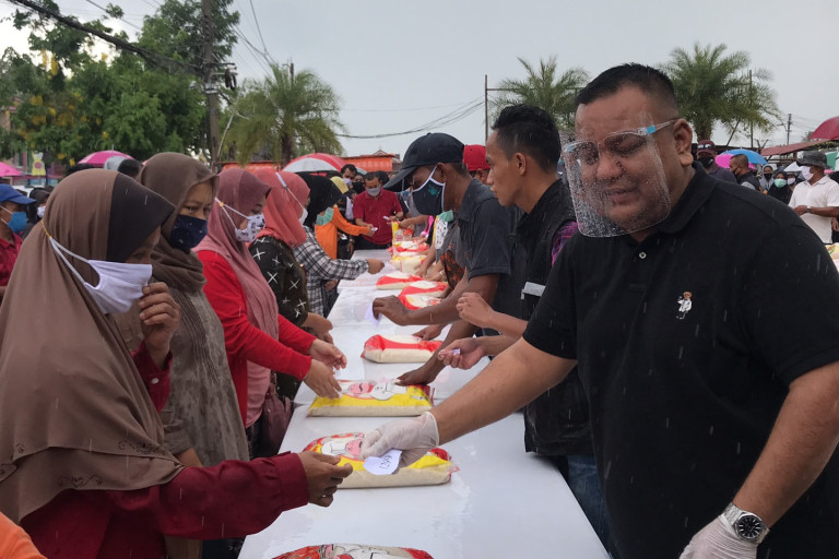 ที่บริเวณหน้าสถานีรถไฟสุไหงโกลก อ.สุไหงโกลก จ.นราธิวาส นายสัมพันธ์ บินมะยูโซะ หรือ ส.ส.บีลา สมาชิกสภาผู้แทนราษฎร จังหวัดนราธิวาส เขต 2 พรรคพลังประชารัฐ แจกข้าวสารประชาชนในพื้นที่กว่า 1,500 ถุงและเงิน 200 บาท เยียวยาพี่น้องประชาชน ที่ได้รับผลกระทบจากไวรัสโควิด-19