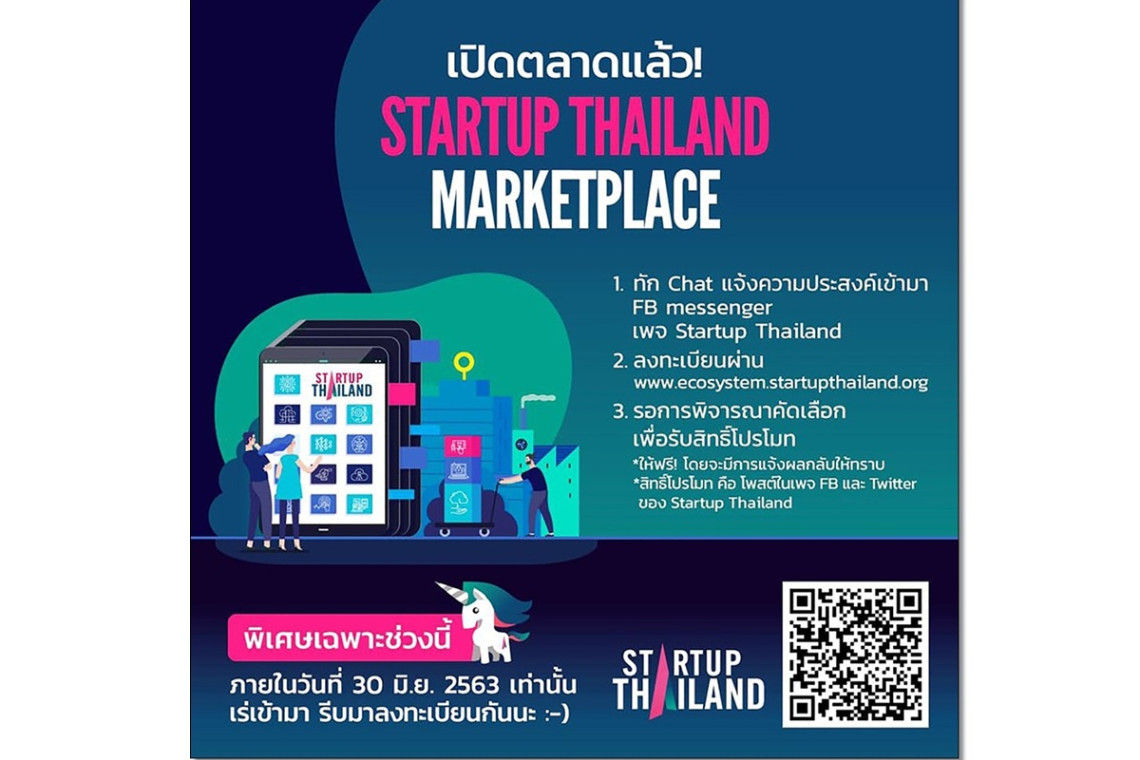 สำนักงานนวัตกรรมแห่งชาติ (องค์การมหาชน) หรือ NIA เปิดพื้นที่ “สตาร์ทอัพไทยแลนด์มาร์เก็ตเพลส : Startup Thailand Marketplace” ตลาดสินค้าและบริการสำหรับสตาร์ทอัพไทยในช่วงวิกฤติโควิด – 19 พร้อมเชิญชวนสตาร์ทอัพที่ต้องการขายสินค้าหรือโฆษณาผลิตภัณฑ์ใหม่ รับสิทธิโปรโมทสินค้าและบริการฟรีผ่านการประชาสัมพันธ์ในรูปแบบคอนเทนต์ บทความ หรือเนื้อหาการโฆษณาในเพจเฟซบุ๊ก และทวิตเตอร์ของ Startup Thailand