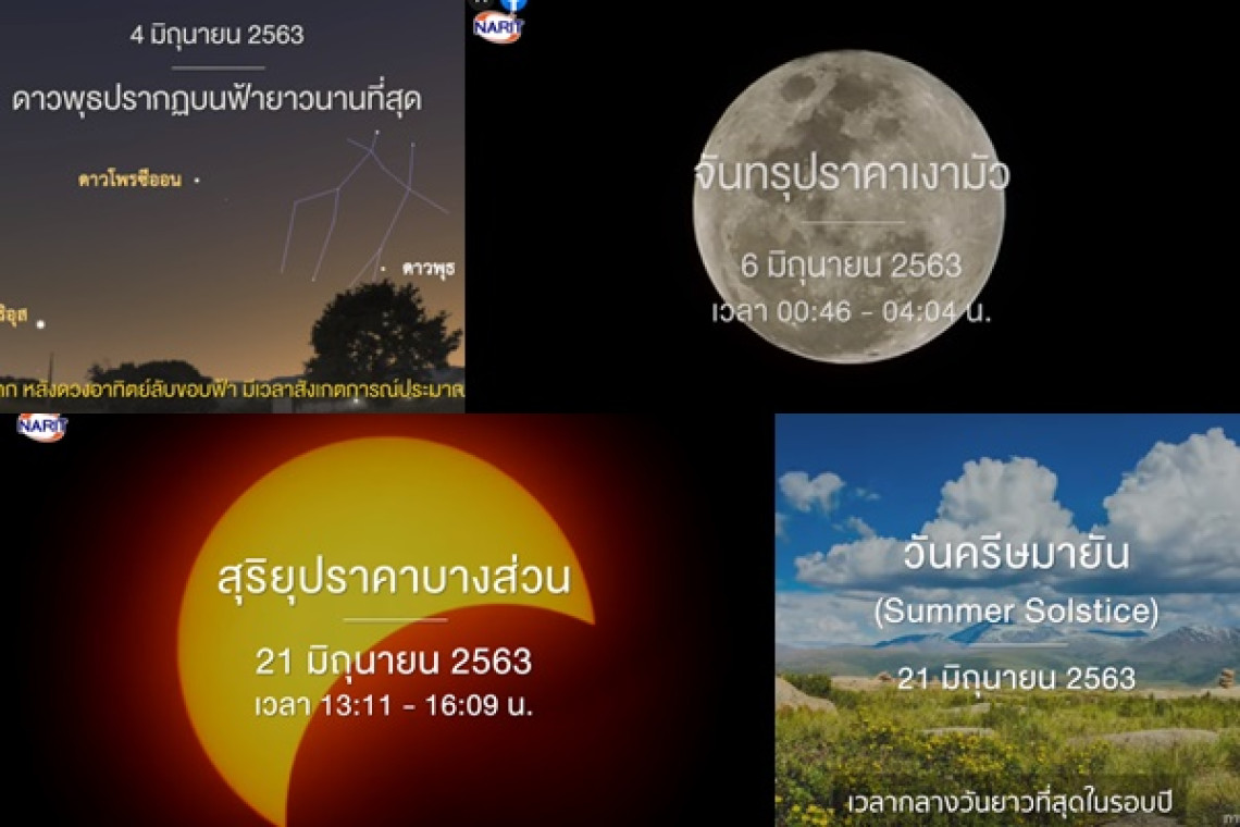 NARIT สถาบันวิจัยดาราศาสตร์แห่งชาติ โพสต์ผ่านเฟซบุ๊กระบุ “ปรากฏการณ์ดาราศาสตร์น่าติดตามในเดือนมิ.ย.63 ดังนี้