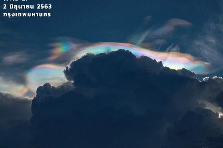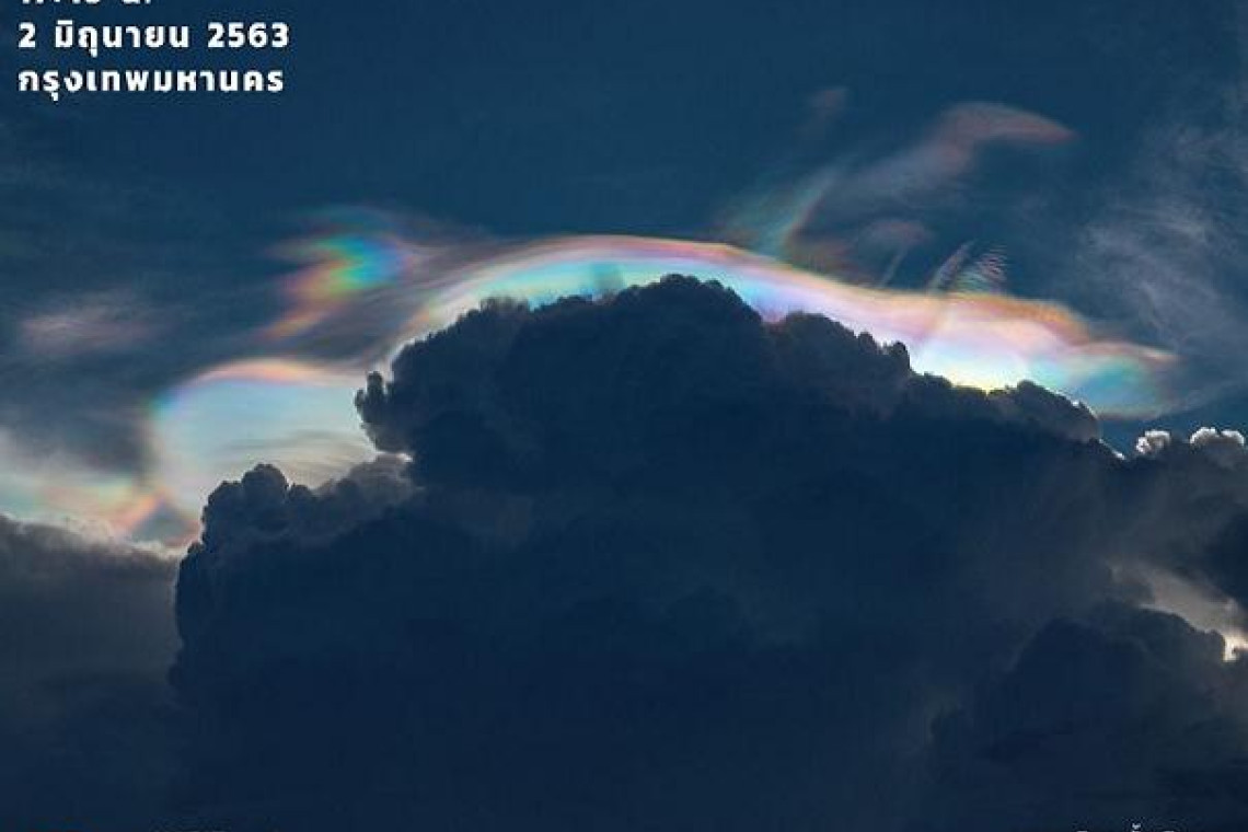 ช่วงเย็นวันอังคารที่ผ่านมา หากใครได้มีโอกาสมองท้องฟ้า จะเห็นว่าท่ามกลางเมฆดำทะมึนกลับมีเมฆหลากสีสวยแปลกตาอย่างที่เรียกว่าอาจไม่เคยเห็นมาก่อน และเพิ่งมารู้ว่าเมฆสีสวยที่เห็น นี่คือ “หมวกเมฆสีรุ้ง” ก่อนที่จะมีฝนตกหนักหลายชั่วโมงตามมาในเมืองกรุง