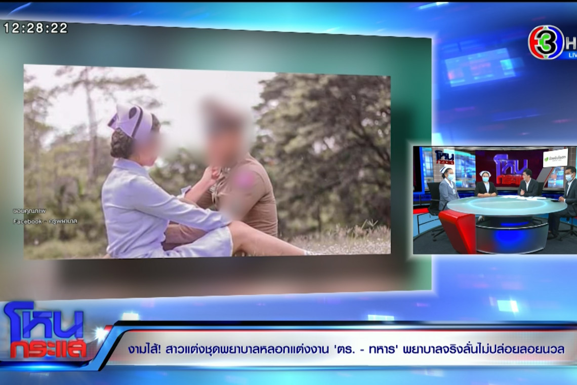 เจมส์ : "คือความผิดตามประมวลกฎหมายอาญาก่อนนะครั การแสดงตนเป็นเจ้าพนักงาน เพราะข้าราชการพยาบาลถือเป็นเจ้าพนักงาน การแสดงตนต้องประกอบอีกอัน คือแสดงอย่างเจ้าพนักงาน กรณีนี้ยังไม่มีความผิดตามประมวลกฎหมายอาญา แต่การที่ผู้ที่ไม่ได้มีวิชาชีพพยาบาล แต่กระทำการพยาบาลหรือแสดงตนให้คนเข้าใจว่าเป็นพยาบาล พอยืนยันชัดเจนว่าเจตนาแรกที่ถายพรีเวดดิ้ง รำฟ้อน นี่เขาแสดงตนว่าเป็นพยาบาล อันนี้จะมีความผิด ตามพ.ร.บ. วิชาชีพการพยาบาลผดุงครรภ์ ปี 28 โทษจำคุกไม่เกิน 2 ปี ปรับไม่เกิน 2 หมื่นบาท"