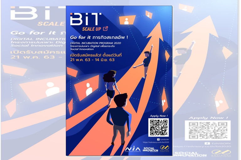 สำนักงานนวัตกรรมแห่งชาติ (องค์การมหาชน) หรือ NIA ขอเชิญผู้ประกอบการหรือผู้ที่มีไอเดียด้านธุรกิจนวัตกรรรมเพื่อสังคมเข้าร่วมโครงการ "BIT Scale up: Go for it ภารกิจสเกลอัพ" ซึ่งเป็นกิจกรรมยกระดับแนวคิดการทำนวัตกรรมเพื่อสังคมด้วยดิจิทัล พร้อมสร้างการเปลี่ยนแปลงธุรกิจดังกล่าวด้วยการใช้เทคโนโลยีอย่างเต็มรูปแบบ ตลอดจนร่วมเรียนรู้ประสบการณ์และแนวคิดจากผู้เชี่ยวชาญด้านต่างๆ ที่จะมาคอยแนะนำการพัฒนาไอเดียโครงการ เพื่อสร้างการเปลี่ยนแปลงและนำไปต่อยอดให้เกิดธุรกิจเพื่อสังคมในอนาคต