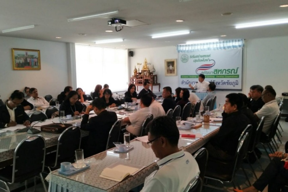 วันนี้ (31 พ.ค.60) นายธำรงค์ ไก่ฟ้า หัวหน้าผู้ตรวจราชการกรมส่งเสริมสหกรณ์ ลงพื้นที่ประชุมติดตามงานตามนโยบายของรัฐบาล งานนโยบายรัฐมนตรีว่าการกระทรวงเกษตรและสหกรณ์ รวมทั้งงานตามแผนปฏิบัติงานและเร่งรัดการเบิกจ่ายงบประมาณประจำปีงบประมาณ พ.ศ.2560 ของสำนักงานสหกรณ์จังหวัดชัยภูมิ โดยมีนายสมศักดิ์ สุภาจรูญ สหกรณ์จังหวัดชัยภูมิ และบุคลากรสำนักงานสหกรณ์จังหวัดชัยภูมิ ร่วมประชุม ณ ห้องประชุมพิทยาลงกรณ์ สำนักงานสหกรณ์จังหวัดชัยภูมิ