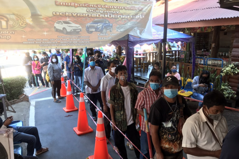 ประชาชนเข้าแถวยาวเหยียด เพื่อรอต่อใบอนุญาตขับรถ ขนส่งทำงานอย่างหนัก ทั้งคัดกรอง และจัดห้องอบรม แต่ละวันรับได้จำนวนจำกัด คิวลงทะเบียนสอบรับใบอนุญาตขับขี่ยาวไปจนถึงสิ้นเดือนกรกฎาคม
