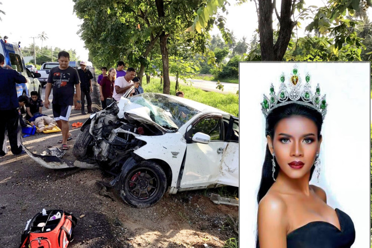 ช็อควงการนางงาม “น้องเฟี้ยส” มิสแกรนด์อุทัยธานีแค่ 4 วัน ประสบอุบัติเหตุรถเก๋งตกร่องกลางถนนเพชรเกษมชนต้นไม้ดับที่ทับสะแก
