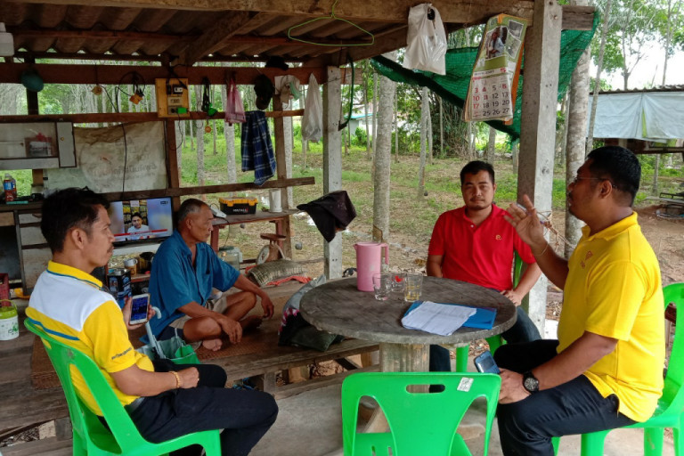 โดยเริ่มศึกษาหาความรู้การทำการเกษตรจากสื่อออนไลน์ต่างๆ และได้แบ่งพื้นที่ออกเป็นส่วนๆ จากประมาณ 8 ไร่ ได้ขุดบ่อจำนวน 2 บ่อ เพื่อเลี้ยงปลาดุก ปลาช่อน ปลาบู่ แบ่งพื้นที่บางส่วนเพื่อปลูกพืชขายยอด ส่วนที่เหลือเป็นสวนยางพารา มีการปลูกพืชผลไม้แซมสวนยาง และเลี้ยงไก่ชนในสวนยางพาราเพื่อส่งลูกไก่ชนจำหน่ายสร้างรายได้ วันนี้ผู้สมัครได้รับคำแนะนำจากเจ้าหน้าที่ส่งเสริมอาชีพของสหกรณ์การเกษตรในพื้นที่ เกี่ยวกับระบบสหกรณ์ กลุ่มสมาชิก การวางแผนการผลิต ฯลฯ ซึ่งผู้สมัครมีความสนใจที่จะเข้าเป็นสมาชิกและร่วมเรียนรู้ ร่วมทำกิจกรรมกับสหกรณ์