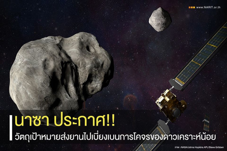 เพจ NARIT สถาบันวิจัยดาราศาสตร์แห่งชาติ โพสต์ผ่านเฟซบุ๊กระบุ “นาซาประกาศ ให้ดวงจันทร์ของดาวเคราะห์น้อยดีดิมอส (65803 Didymos) เป็นเป้าหมายของโครงการเบนวิถีโคจรดาวเคราะห์น้อยคู่ (The Double Asteroid Redirection Test) หรือ #DART โดยมีกำหนดการปล่อยขึ้นสู่อวกาศในช่วงเดือนกรกฏาคม พ.ศ. 2564 ภารกิจหลักคือการทดสอบเทคโนโลยีที่จะใช้ป้องกันโลกจากการพุ่งชนของวัตถุนอกโลก