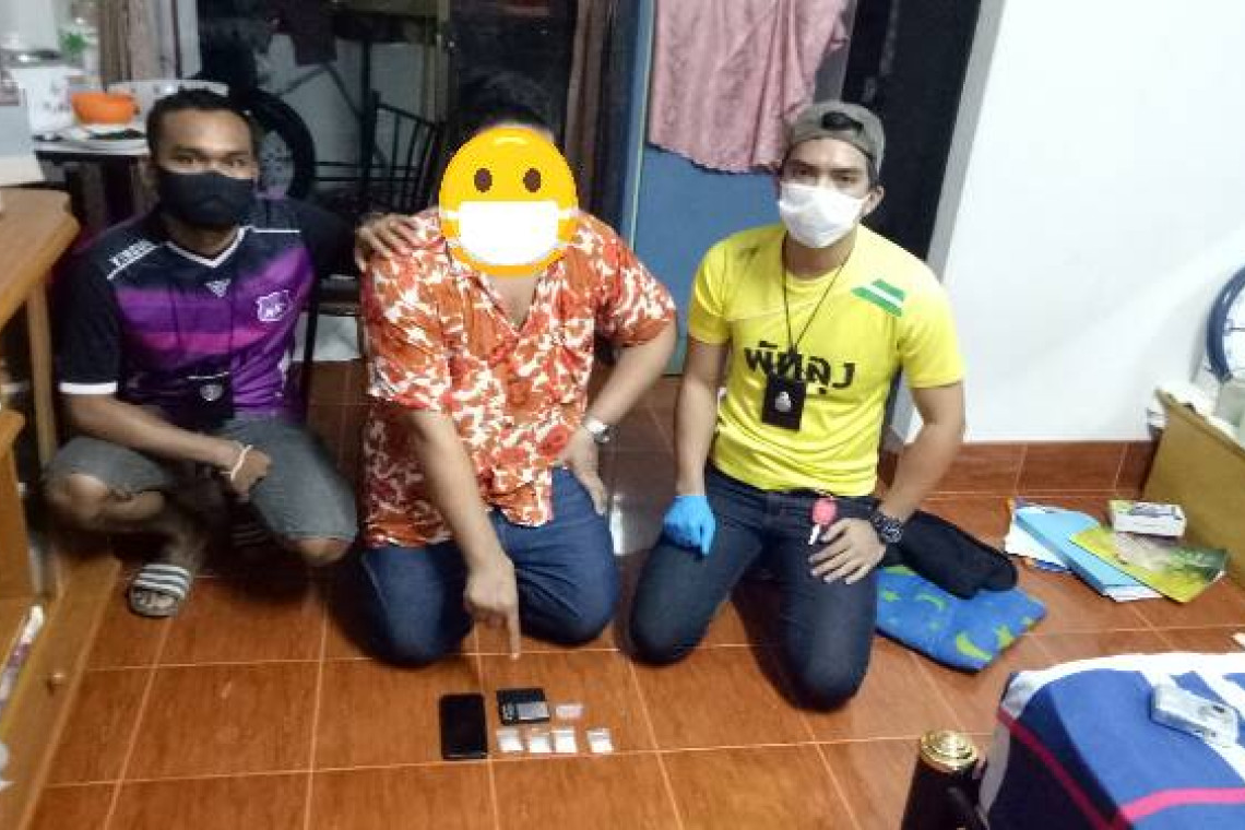 เมื่อวานนี้ ( 7 ก.ค.63 ) จากการสืบทราบของ พล.ต.ต.นิตินัย หลังยาหน่าย ผบก.ตชด.ภาค 4 ว่ามีการลักลอบจำหน่ายยาเสพติดกันที่บริเวณ ซอย 17/2 อ.หาดใหญ่ จ.สงขลา จึงสั่งการให้ ร.ต.อ.นฤชาติ เวชโช หน.ชปส.บก.ตชด.ภาค 4 พร้อมด้วยกำลังเจ้าหน้าที่ ตชด. ชุดปราบปรามยาเสพติดอีกจำนวนหนึ่ง รุดเข้าตรวจสอบและจับกุม ซึ่งต่อมาเจ้าหน้าที่ ตชด.ชุดดังกล่าวสามารถจับกุมตัวนายแมน เหมรัญ หรือบังแมน อายุ 49 ปี เดิมอยู่บ้านเลขที่ 444/1 ม.3 ต.พะวง อ.เมือง จ.สงขลา พร้อมยึดของกลาง ยาเสพติดให้โทษประเภท 1(ไอซ์) จำนวน 4 ถุง น้ำหนักประมาณ 20.02 กรัม (ราคาประมาณ 10,000 บาท) ,ยาเสพติดให้โทษประเภท 1(ยาบ้า) จำนวน 8 เม็ด ,โทรศัพท์มือถือ จำนวน 1 เครื่อง ,เครื่องชั่งดิจิตอล จำนวน 1 เครื่อง และเงินสด จำนวน 220 บาท ได้คาห้องพักหมายเลข 707 ของคอนโดคันทรี่โฮม ใน ซ.17/2 ต.หาดใหญ่ อ.หาดใหญ่ จ.สงขลา
