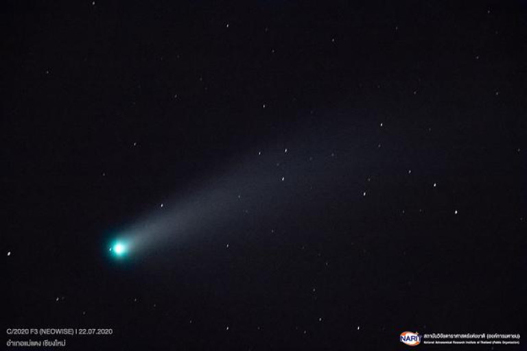 NARIT สถาบันวิจัยดาราศาสตร์แห่งชาติ โพสต์ผ่านเฟซบุ๊ก เผยภาพ ดาวหางนีโอไวส์ บริเวณจังหวัดเชียงใหม่ ซึ่งช่วงหัวค่ำวันที่ 22 ก.ค.ที่ผ่านมา ฟ้าใส เป็นใจ ไม่มีฝน มีเมฆเป็นระยะๆ แต่เราก็เก็บภาพมาฝากคนไทยได้สำเร็จ