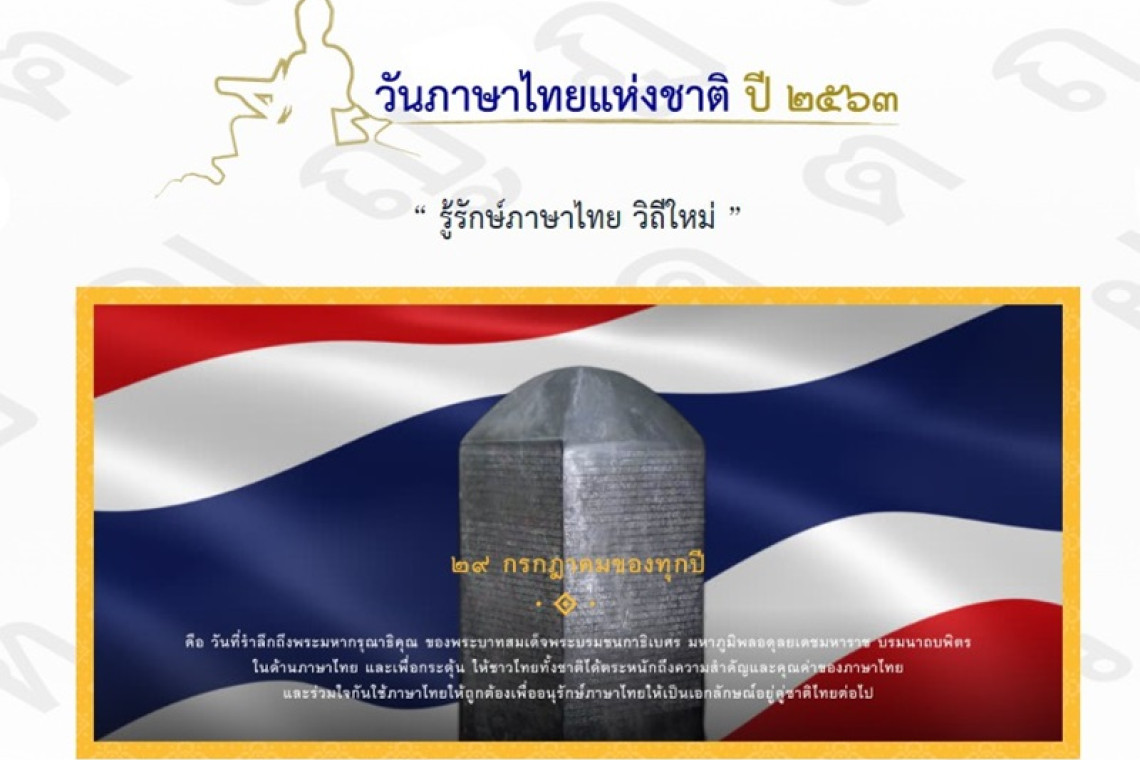 นายกฤษศญพงษ์ ศิริ ปลัดกระทรวงวัฒนธรรม (วธ.) กล่าวว่า 29 กรกฎาคมของทุกปีเป็นวันภาษาไทยแห่งชาติ เพื่อน้อมรำลึกในพระมหากรุณาธิคุณของพระบาทสมเด็จพระบรมชนกาธิเบศร มหาภูมิพลอดุลยเดชมหาราช บรมนาถบพิตร ผู้ทรงเป็นนักปราชญ์และนักภาษาไทย และเพื่อกระตุ้นให้สถาบันการศึกษา องค์กร หน่วยงานต่างๆ ทั้งภาครัฐ เอกชน และประชาชนชาวไทยได้ตระหนักในความสำคัญของภาษาไทยและใช้ภาษาไทยอย่างถูกต้อง เพื่อรักษาภาษาไทยอันเป็นภาษาประจำชาติไว้ให้งดงามยั่งยืน แต่เนื่องจากในปัจจุบันมีการแพร่ระบาดของโรคติดเชื้อไวรัสโคโรนา 2019 (COVID-19) หลีกเลี่ยงกิจกรรมการรวมตัวของคนหมู่มากเพื่อป้องกันและสกัดกั้นการแพร่ระบาดของโรค วธ. ร่วมกับหน่วยงานภาครัฐ เอกชน ได้เล็งเห็นโอกาสในการปรับตัวให้สอดคล้องกับสถานการณ์ จึงได้จัดทำเว็บไซต์กิจกรรมงานวันภาษาไทยแห่งชาติ เพื่อสร้างวัฒนธรรมการเรียนรู้บนโลกออนไลน์ เชื่อมต่อการสื่อสารระหว่างบุคคลให้เข้าถึง “ภาษาไทย” มรดกภูมิปัญญาอันล้ำค่าของคนไทยได้อย่างสะดวกสบาย รวดเร็ว สอดคล้องกับการดำเนินชีวิตวิถีใหม่ (New Normal)