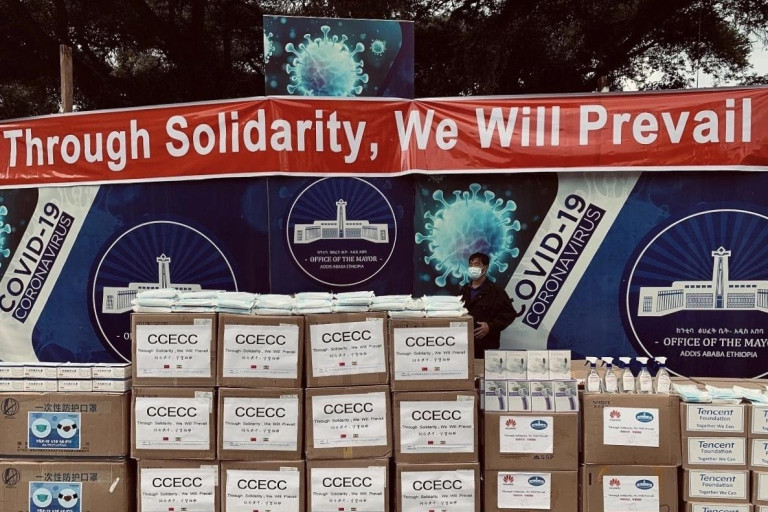 เมื่อวันที่ 2 มิถุนายนมีผู้ยืนยันการติดเชื้อของโควิด-19 จำนวน 1,344 รายในเอธิโอเปีย โดยที่เมืองหลวงอย่างแอดดิสอาบาบานั้นมีสัดส่วนมากกว่า 70% สถานทูตจีนประจำประเทศเอธิโอเปียได้เรียกร้องให้ผู้ประกอบการจีนในประเทศเอธิโอเปียบริจาคอุปกรณ์การแพทย์ให้กับรัฐบาลเทศบาลแอดดิสอาบาบา โดยบริษัทการก่อสร้างวิศวกรรมโยธาแห่งประเทศจีน (CCECC)ได้ดำเนินการตามข้อกำหนดของสถานทูตจีนอย่างแข็งขันและบริจาคเงินในรูปแบบต่าง ๆ และได้รับเสียงชื่นชมจากชุมชนท้องถิ่น ซึ่ง CCECC ได้เข้าร่วมในการบริจาคเวชภัณฑ์และการสนับสนุนทางการเงินพร้อมกับบริษัทอื่น ๆ ของจีน ในเอธิโอเปียให้กับรัฐบาลเทศบาลเมืองแอดดิสอาบาบาเมื่อวันที่ 2 มิถุนายน