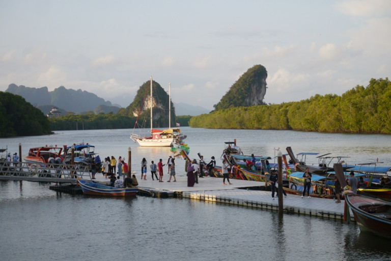 ร่วมสมัย/ชะมวง พฤกษาถิ่น: ไปเดินชิมของกินอร่อยๆ แถมอินเลิฟบรรยากาศยามเย็นของแม่น้ำ เรือหัวโทง เรือท่องเที่ยวลอยลำ มีเขาขนาบน้ำอันโดดเด่น ป่าชายเลน ประติมากรรมปูดำ อีกหลายชิ้นให้กดชัตเตอร์ สถานที่ว่านี้คือเมืองกระบี่