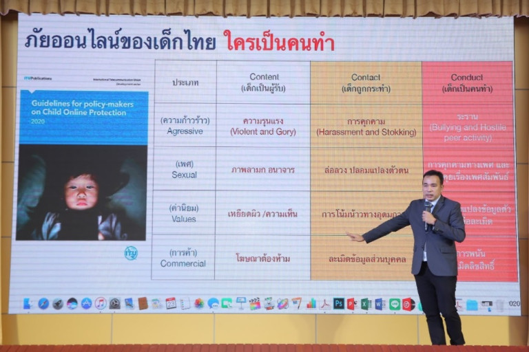 ภายในงาน ดร.ศรีดา ตันทะอธิพานิช มูลนิธิอินเทอร์เน็ตร่วมพัฒนา ได้เผยผลสำรวจสถานการณ์เด็กกับภัยออนไลน์ ประจำปี 2563 ซึ่งร่วมกับ ศูนย์ประสานงานส่งเสริมการปกป้องคุ้มครองเด็กและเยาวชนในการใช้สื่อออนไลน์ (ศปอ.) หรือ โคแพท (COPAT) โดยได้รับความอนุเคราะห์จาก สำนักงานคณะกรรมการการศึกษาขั้นพื้นฐาน (สพฐ.) เก็บข้อมูลระหว่าง พ.ค.-ก.ค. 2563 พบว่า กลุ่มตัวอย่างซึ่งเป็นเด็กมัธยมศึกษา อายุ 12-18 ปี จำนวน 14,945 คน มีอิสระในการใช้สื่อออนไลน์ค่อนข้างมาก และเด็กร้อยละ 89 เชื่อว่าในโลกออนไลน์มีภัยอันตรายหรือความเสี่ยงต่างๆร้อยละ 61 เชื่อว่าหากเผชิญภัยอันตรายดังกล่าวจะสามารถแก้ไขปัญหาได้ด้วยตัวเองในประเด็นนี้ถือว่าน่าเป็นห่วง นอกจากนี้ผลสำรวจยังพบด้วยว่า เว็บไซต์หรือเนื้อหาที่ผิดกฎหมายเป็นอันตรายที่เด็กเข้าถึงมากที่สุด 4 อันดับแรกคือ ความรุนแรง ร้อยละ 49 การพนัน ร้อยละ 22 สื่อลามกอนาจาร ร้อยละ 20 และ สารเสพติด ร้อยละ 16 ส่วนพฤติกรรมเสี่ยงภัยออนไลน์ 6 อันดับแรกของเยาวชน คือ 1.ซื้อสินค้าจากร้านค้าออนไลน์ที่ไม่รู้จัก ร้อยละ 44 2.รับคนแปลกหน้าเป็นเพื่อน ร้อยละ 39 3.ใส่ข้อมูลตัวตนบนสื่อโซเชียลมีเดีย ร้อยละ 26 4.แชร์ข้อมูลโดยไม่ได้ตรวจสอบ และ 5.นำข้อมูลมาใช้โดยไม่รับอนุญาตหรืออ้างอิงแหล่งที่มา ร้อยละ 24 เท่ากัน และ 6. เข้าถึงสื่อลามก ร้อยละ 14 โดยในส่วนของสื่อลามก มีเด็กถึง 641 คน บันทึกและดาวน์โหลดสื่อลามกอนาจารเด็ก (ต่ำกว่า 18 ปี) มาไว้ในอุปกรณ์ไอทีหรือพื้นที่ส่วนตัวบนอินเทอร์เน็ต ขณะที่อีกร้อยละ 45 มีการส่งต่อหรือแบ่งปันสื่อลามกอนาจารเด็กที่ได้มากับเพื่อนและสังคมออนไลน์