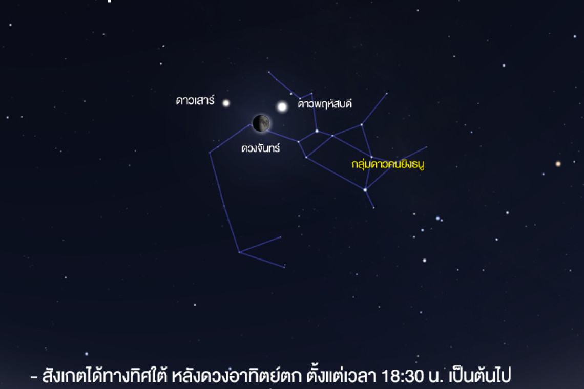 NARIT สถาบันวิจัยดาราศาสตร์แห่งชาติ โพสต์ผ่านเฟซบุ๊ก ชวนชมดาวเคียงเดือนคืนนี้ โดยระบุ 25 กันยายน 2563 ดาวพฤหัสบดี และดาวเสาร์ เคียงดวงจันทร์ข้างขึ้น 9 ค่ำ ปรากฏบนท้องฟ้าทางทิศใต้หลังดวงอาทิตย์ตกลับขอบฟ้า ตั้งแต่เวลา 18:30 น. เป็นต้นไป