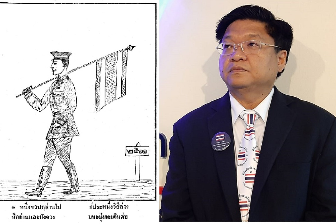 วันที่ 28 ก.ย.63 - นายพฤฒิพล ประชุมผล ผู้อำนวยการบริหาร พิพิธภัณฑ์ธงชาติไทย ได้โพสต์เฟซบุ๊ก ถึง ภาพลายเส้นฝีพระหัตถ์พระบาทสมเด็จพระมงกุฎเกล้าเจ้าอยู่หัว รัชกาลที่ 6 พร้อมข้อความระบุ ว่า ภาพลายเส้นฝีพระหัตถ์พระบาทสมเด็จพระมงกุฎเกล้าเจ้าอยู่หัว เป็นรูปทหารไทยอัญเชิญธงไตรรงค์ ซึ่งเป็นสัญลักษณ์สูงสุดของชาติ เดินผ่านป้ายพระพุทธศักราช 2461 (พระองค์ได้พระราชทานธงไตรรงค์ในวันที่ 28 กันยายน พระพุทธศักราช 2460)