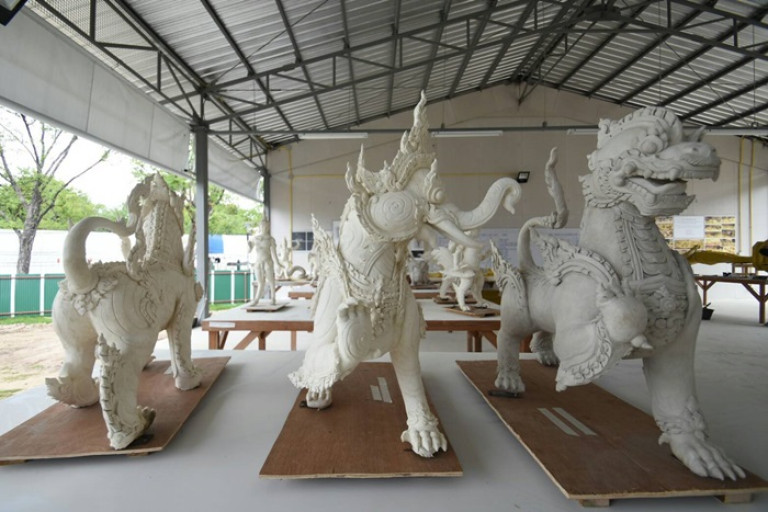 ความคืบหน้าจัดสร้างสัตว์หิมพานต์ประติมากรรมประดับสระอโนดาตพระเมรุมาศ งานพระราชพิธีถวายพระเพลิงพระบรมศพพระบาทสมเด็จพระปรมินทรมหาภูมิพลอดุลยเดช