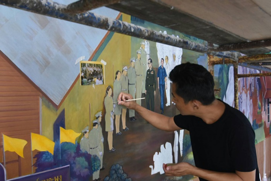 “วิทยาลัยช่างศิลปลาดกระบัง”เผยภาพรวมลงสีจิตรกรรมโครงการพระราชดำริฝาผนังพระที่นั่งทรงธรรม คืบหน้า40% จัดจิตรกรเชี่ยวชาญลงแสง-เงาภาพเหมือนบุคคล ต้นไม้ สถาปัตยกรรม เพิ่มภาพเขียนเขื่อนบางลางจ.ยะลาในผนังที่3 เสริมมิติภาพให้ลงตัว
