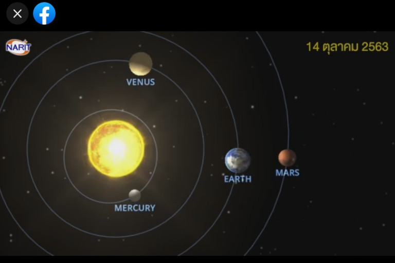 เพจ NARIT สถาบันวิจัยดาราศาสตร์แห่งชาติ โพสต์ระบุ 14 ตุลาคมนี้ #Marsอีกแล้ว NARIT ชวนส่องดาวเคราะห์แดงอีกครั้งกับปรากฏการณ์ #ดาวอังคารอยู่ตำแหน่งตรงข้ามดวงอาทิตย์