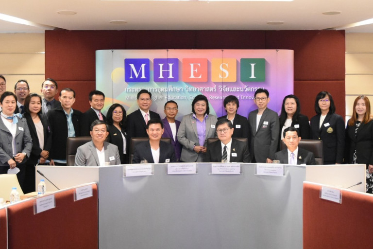 กระทรวงการอุดมศึกษา วิทยาศาสตร์ วิจัยและนวัตกรรม (อว.) จัดงานแถลงข่าวโครงการพัฒนาเครือข่ายและศักยภาพผู้บริหารระดับสูงของกระทรวงการอุดมศึกษา วิทยาศาสตร์ วิจัยและนวัตกรรม เมื่อวันที่ 6 ตุลาคม 2563 ณ ห้องประชุมศาสตราจารย์วิจิตร ศรีสอ้าน ชั้น 5 อาคารสำนักงานคณะกรรมการอุดมศึกษา ถนนศรีอยุธยา ภายในงาน ศาสตราจารย์พิเศษ ดร.เอนก เหล่าธรรมทัศน์ รัฐมนตรีว่าการกระทรวงการอุดมศึกษา วิทยาศาสตร์ วิจัยและนวัตกรรม กล่าวเปิดที่มาของหลักสูตรว่า จากนโยบายของพลเอกประยุทธ์ จันทรโอชา นายกรัฐมนตรี ที่ต้องการให้เกิดความร่วมมือและสร้างความเชื่อมโยงงานของสถาบันอุดมศึกษาและหน่วยงานด้านการวิจัย เพื่อขับเคลื่อนงานของกระทรวง อว.ให้มีประสิทธิภาพสูงสุด และสามารถทำงานร่วมกับภาคเอกชนได้ตามยุทธศาสตร์การนำวิทยาศาสตร์ การวิจัยและนวัตกรรมมาใช้ขับเคลื่อนประเทศ และสร้างขีดความสามารถในการแข่งขันในระดับโลก ตนจึงได้มีนโยบายให้ที่ประชุมอธิการบดีแห่งประเทศไทย (ทปอ.) จัดทำโครงการพัฒนาเครือข่ายและศักยภาพผู้บริหารระดับสูง ซึ่งครอบคลุมทั้งหน่วยงานของ อว. หน่วยงานภาครัฐอื่นๆ รวมถึงภาคธุรกิจหรือเอกชน เพื่อสนธิกำลังให้เกิดการทำงานร่วมกันอย่างมีพลัง และยังเป็นการเปิดโอกาสให้ได้สร้างความสัมพันธ์ ได้เรียนรู้งานซึ่งกันและกัน ถือเป็นการดึงศักยภาพของทุกหน่วยงานใน อว. ออกมารับใช้สังคมได้อย่างเต็มประสิทธิภาพ
