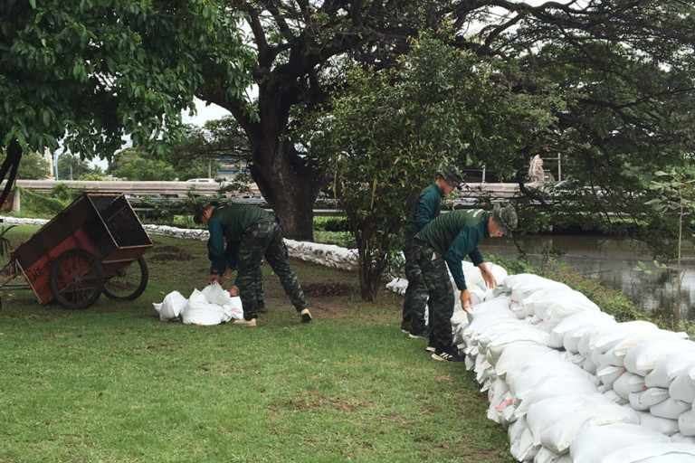 กรมศิลปากรขนกระสอบทรายสร้างทำนบเตรียมพร้อมมาตรการป้องกันน้ำท่วมโบราณสถาน พิพิธภัณฑสถานแห่งชาติ พิมาย จ.นครราชสีมา