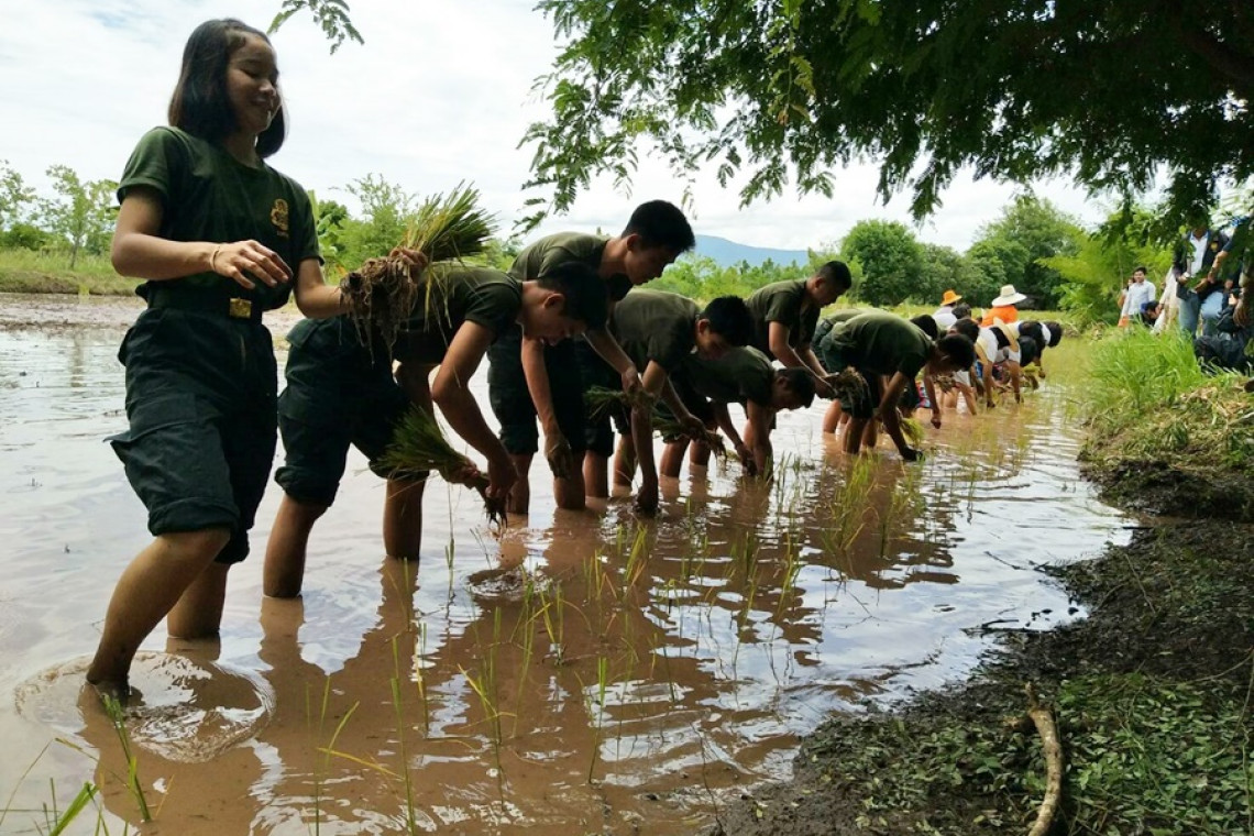 นายเสนอ นราพล ประธานกลุ่มสหกรณ์การเกษตรเกษตรสมบูรณ์ จำกัด ให้การต้อนรับสื่อมวลชนทุกสาขา ในโอกาสเดินทางศึกษาดูงานศูนย์เรียนรู้เศรษฐกิจพอเพียงตำบลบ้านบัว ซึ่งเป็นศูนย์ต้นแบบด้านปลูกพืช เลี้ยงสัตว์แบบผสมผสานบนพื้นที่ 12 ไร่ โดยได้รับความสนใจจากสื่อมวลโดยเฉพาะการเลี้ยงหนูนาเพื่อจำหน่าย ไก่ดำภูพาน เตามือถือ การดำนากลีบเดียว นอกจากนี้ มีนักเรียนจากโรงเรียนโนนกอกวิทยา จำนวน 30 คนร่วมกิจกรรม "ดำวันแม่ เกี่ยววันพ่อ"