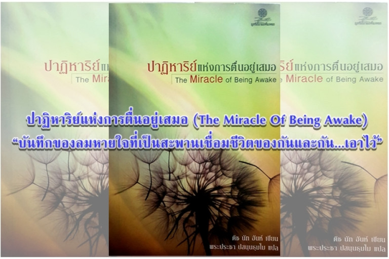 “ปาฏิหาริย์แห่งการตื่นอยู่เสมอ”..(THE MIRACLE OF BEING AWAKE)...หนังสือที่มุ่งแสดงถึง..อัศจรรย์แห่งการรับรู้ที่ย้ำเตือนถึงว่า..”เวลาอันเป็นปัจจุบัน”นั้น...สำคัญที่สุด...เหตุผลสำคัญก็คือ..”เพราะอดีตได้ผ่านเลยเราไปแล้ว..และมันจะไม่ได้เป็นของของเราอีกต่อไป...ส่วนอนาคตก็ยังมาไม่ถึง จึงยังไม่ได้เป็นของเรา...ดั่งนี้มนุษย์เราทุกคน...จึงมีเพียงแค่ปัจจุบันขณะเท่านั้นที่เป็นของเรา เราจึงต้องอยู่กับปัจจุบัน...ค้นหาและแสวงหาสิ่งที่อยู่ตรงหน้าให้ดีที่สุด...มันคือวิธีการฝึกสติ..ที่ทำให้เราสามารถที่จะ รู้ตัวทั่วพร้อม...ในทุกๆการกระทำของเรา”