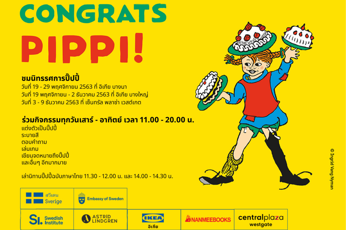 งานเฉลิมฉลองครั้งนี้จัดโดยสถานทูตสวีเดน โดยร่วมมือกับอิเกีย ประเทศไทย และบริษัท นานมีบุ๊คส์ จำกัด นิทรรศการได้รับการสนับสนุนจาก Swedish Institute และ Astrid Lindgren company