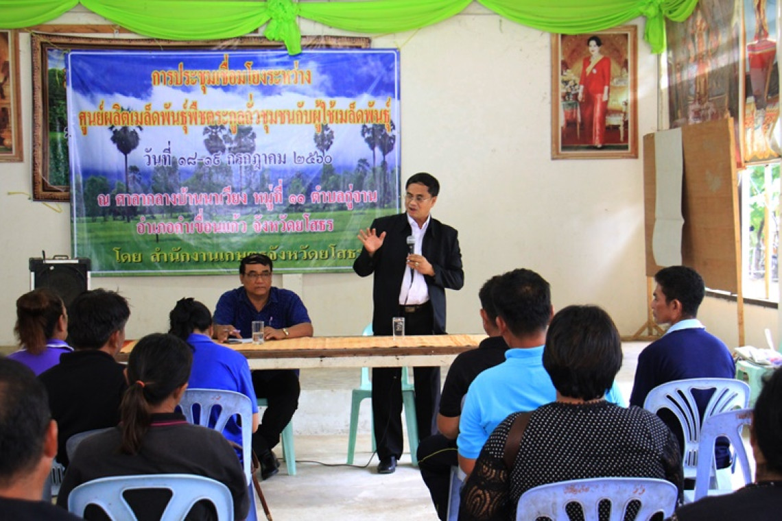 สำนักงานเกษตรจังหวัดยโสธร ร่วมกับสำนักงานสหกรณ์จังหวัดยโสธร ดำเนินการจัดการประชุมเชื่อมโยงระหว่างศูนย์ผลิตเมล็ดพันธุ์พืชตระกูลถั่วชุมชนกับผู้ใช้เมล็ดพันธุ์ เรื่องการตลาดถั่วลิสง โดยมีนายพนัส พันธุ์วรรณ สหกรณ์จังหวัดยโสธร พร้อมด้วยเจ้าหน้าที่สำนักงานสหกรณ์จังหวัดยโสธร และสมาชิกกลุ่มแม่บ้านเกษตรกรบ้านนาเวียง สังกัดสหกรณ์การเกษตรคำเขื่อนแก้ว จำกัด เข้าร่วมประชุมฯ จำนวน 50 ราย ณ ศาลากลางหมู่บ้านนาเวียง ตำบลกู่จาน อำเภอคำเขื่อนแก้ว จังหวัดยโสธร