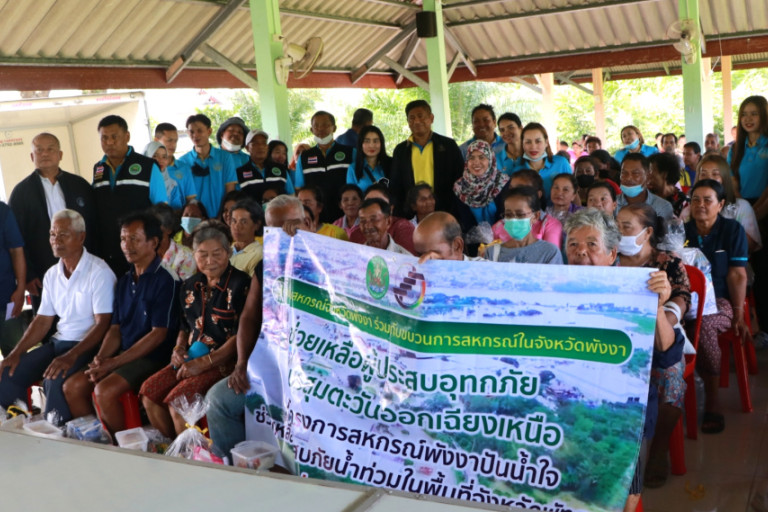 นายคำรณ พวงมณี ผู้ตรวจราชการกรมส่งเสริมสหกรณ์ เขตตรวจราชการที่ 5,6,7 และ 10 พร้อมด้วยนายชาย คงแก้ว ผู้อำนวยการกองพัฒนาสหกรณ์ภาคการเกษตรและกลุ่มเกษตรกร นายธนะวิทย์ ชูทอง สหกรณ์จังหวัดพังงา พร้อมด้วยทีมงานฯ และขบวนการสหกรณ์ในจังหวัดพังงา นำโดยสหกรณ์การเกษตรเพื่อการตลาดลูกค้า ธกส.พังงา จำกัด ได้นำถุงยังชีพมอบให้กับสมาชิกสหกรณ์ผู้ใช้น้ำชัยบุรี จำกัด ซึ่งได้รับผลกระทบจากอุทกภัยในครั้งนี้ ณ หมู่ที่ 6 ตำบลชัยบุรี อำเภอเทือง จังหวัดพัทลุง จำนวน 300 ครัวเรือน