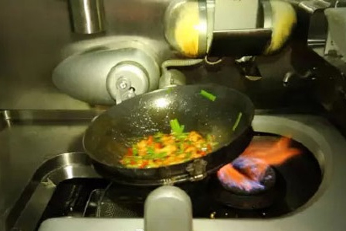 หุ่นยนต์สีเหลืองสดใสตัวนี้สูงประมาณ 3 เมตร (9.84 ฟุต) ได้ใช้แขนของมันยกอาหารที่ตระเตรียมไว้ก่อนหน้านี้ขึ้น เช่น ไข่ตุ๋นและปีกไก่ทอด นำเข้าไปอุ่นในเตาไมโครเวฟขนาดใหญ่ เพื่อตระเตรียมอาหาร