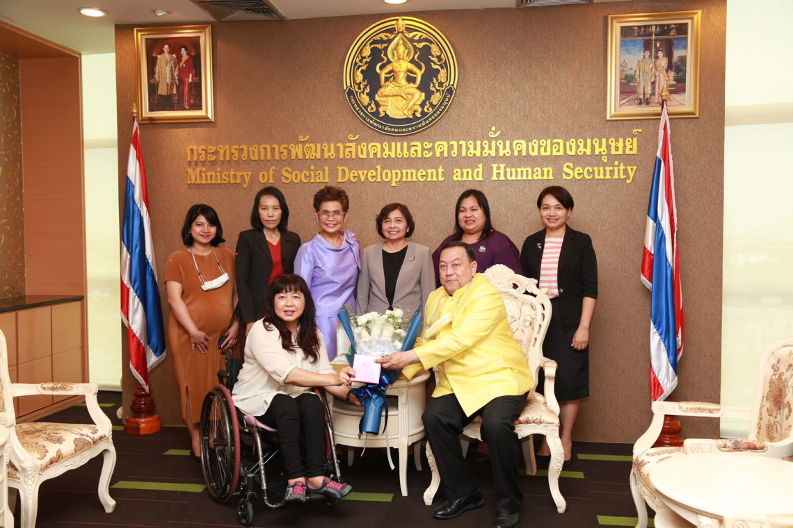 นายจุติ ไกรฤกษ์ รัฐมนตรีว่าการกระทรวงการพัฒนาสังคมและความมั่นคงของมนุษย์ (พม.) พร้อมด้วยนางพัชรี อาระยะกุล ปลัดกระทรวงการพัฒนาสังคมและความมั่นคงของมนุษย์ (พม.) และนางสาวสราญภัทร อนุมัติราชกิจ อธิบดีกรมส่งเสริมและพัฒนาคุณภาพชีวิตคนพิการ ร่วมแสดงความยินดีและมอบช่อดอกไม้ให้แก่ นางสาวเสาวลักษณ์ ทองก๊วย สตรีพิการไทย ในโอกาสที่ได้รับเลือกตั้งให้ดำรงตำแหน่งสมาชิกคณะกรรมการว่าด้วยสิทธิคนพิการแห่งสหประชาชาติ วาระ 4 ปี (ค.ศ. 2020 - 2024) เป็นสมัยแรก