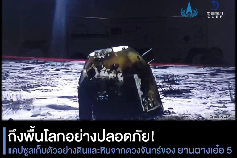 NARIT สถาบันวิจัยดาราศาสตร์แห่งชาติ โพสต์ผ่านเฟซบุ๊กระบุ "17 ธันวาคม พ.ศ. 2563 เวลา 00.59 น. (ตามเวลาประเทศไทย) แคปซูลเก็บตัวอย่างดินและหินจากดวงจันทร์ของยานฉางเอ๋อ 5 ร่อนลงสู่พื้นโลกเรียบร้อยแล้ว บริเวณเขตปกครองตนเองมองโกเลียใน ทางภาคเหนือของประเทศจีน แคปซูลดังกล่าวได้เก็บตัวอย่างจากดวงจันทร์กลับมาประมาณ 2 กิโลกรัม มากกว่ายานลูนา 24 ของอดีตสหภาพโซเวียตที่นำตัวอย่างจากดวงจันทร์ 170 กรัมกลับมาก่อนหน้านี้เมื่อ 44 ปีก่อน