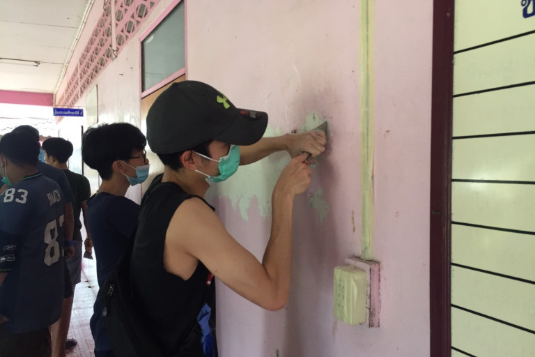 และให้นักเรียน นักศึกษาได้ใช้ความรู้ที่ได้รับจากการเรียนมาปฏิบัติจริงตามแนวพระราชดำริ “เรียนคู่งาน งานคู่เรียน” สำหรับปี 2563 สถาบันได้ลงพื้นที่พัฒนาโรงเรียนวัดหัวหว้า จังหวัดชัยนาท เนื่องจากเป็นโรงเรียนขนาดเล็ก อาคารและสนามเด็กเล็กไม่เอื้อต่อเรียนรู้ของเด็กเท่าที่ควร รวมถึงอุปกรณ์การเรียนการสอน อุปกรณ์นันทนาการที่ไม่เพียงพอ นักเรียน นักศึกษา จึงได้ร่วมใจกันพัฒนาให้สภาพแวดล้อมของโรงเรียนเหมาะกับเรียนมากขึ้น ตั้งแต่จัดห้องสุมด เปลี่ยนหลอดไป ทาสีอาคาร ห้องน้ำ สำรวจและตรวจเช็คจุดที่ต้องติดตั้งอุปกรณ์ไฟฟ้า ติดตั้งพัดลม ติดตั้งฝ้าเพดาน อุดรอยรั่วหลังคา การเชื่อมประตูฟุตบอล ทำความสะอาดบริเวณโดยรอบ และมอบหนังสือสื่อการเรียนการสอนแก่โรงเรียน