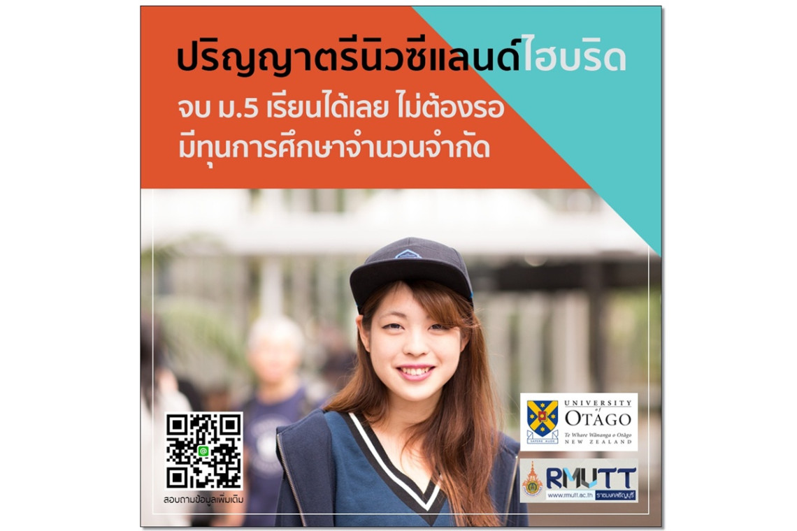 โอกาสดีๆมาแล้ว สำหรับใครที่อยากเรียนจบปริญญาตรีด้านธุรกิจในมหาวิทยาลัยชั้นนำของนิวซีแลนด์ การศึกษานิวซีแลนด์ สถานทูตนิวซีแลนด์ ประจำประเทศไทย ร่วมกับ มหาวิทยาลัยเทคโนโลยีราชมงคลธัญบุรี (มทร.ธัญญบุรี หรือ RMUTT) และ มหาวิทยาลัยโอทาโกของนิวซีแลนด์ เชิญร่วมงานออนไลน์เปิดตัวหลักสูตรปริญญาตรีไฮบริดและแนะแนวการศึกษาต่อด้านธุรกิจ เพื่อแนะนำหลักสูตรพิเศษที่จัดขึ้นสำหรับนักเรียนไทยโดยเฉพาะ “หลักสูตรปรับพื้นฐานด้านธุรกิจ (Business Foundation Studies Programme)” หลักสูตรมุ่งสู่ปริญญาตรีนิวซีแลนด์แบบไฮบริดกับมหาวิทยาลัยติดอันดับโลก เพื่อเปิดโอกาสให้น้องๆที่เรียนจบมัธยม 5 สามารถเรียนเตรียมปริญญาปี 1 นิวซีแลนด์ได้ทันทีที่ประเทศไทยกับมทร.ราชมงคลธัญบุรีและเรียนออนไลน์กับมหาวิทยาลัยโอทาโกเป็นเวลา 8 เดือน และเปลี่ยนเป็นบินไปเรียนนิวซีแลนด์ได้ทันทีเมื่อนิวซีแลนด์เปิดประเทศ พร้อมแนะนำข้อมูลทุนการศึกษา $10,000 จากมหาวิทยาลัยโอทาโก หลังเรียนจบปริญญาตรีที่นิวซีแลนด์ยังสามารถทำงานต่อได้อีกสูงสุด 3 ปีเต็ม