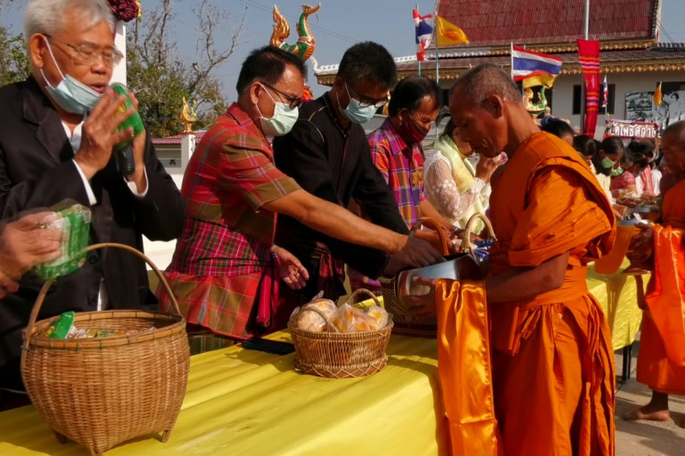 วันที่ 18 ก.พ.64 ที่วัดโพธิ์สว่าง บ้านหนองนารี ตำบลบุสูง อำเภอวังหิน จังหวัดศรีสะเกษ นายอนุสรณ์ แสงกล้า นายอำเภอวังหิน ได้มอบหมายให้นายเตชินท์ วรวงศ์ ปลัดอำเภอวังหิน เป็นประธานทำบุญย้อนยุคตักบาตรข้าวสารอาหาแห้ง ตามโครงการโรงเรียน/หมู่บ้านศีล ตามรอยพ่ออย่างพอเพียง ซึ่งใช้ “บวร”บ้าน/วัด/โรงเรียน เป็นฐานในการพัฒนา โดยมีนายทิวา รุ้งแก้ว นายกพุทธสมาคมจังหวัดศรีสะเกษ นายพัฒนศักดิ์ บางใบ ผู้อำนวยการโรงเรียนบ้านหัววัวหนองนารี สพป.ศก.1 และนายคูณ คำวงษ์ ผู้ใหญ่บ้านชุมชนหัววัวหนองนารี หมู่ที่ 8 ตำบลบุสูง นำชาวพุทธศาสนิกชนตำบลบุสูง ร่วมกิจกรรมย้อนยุค“นุ่งผ้าไท ใส่บาตรวัฒนธรรม น้อมนำวิถีพอเพียง” ตามโครงการโรงเรียน/หมู่บ้านศีล 5 ตามรอยพ่ออย่างพอเพียงทำบุญตักบาตรเป็นจำนวนมาก และได้ความเมตตาจาก ท่านเจ้าอาวาสวัดโพธิ์สว่าง นำพระภิกษุออกรับบิณฑบาต ทั้งนี้เพื่อเป็นการสืบสานวัฒนธรรมอันดีงามของไทย เพื่อเปิดโอกาสข้าราชการ พ่อค้า และประชาชนในเขตตำบลบุสูง ได้ทำบุญอุทิศกุศลให้แก่บรรพบุรุษที่ล้วงลับไปแล้ว เพื่อความเป็นสิริมงคลแก่ตนเองและครอบครัว และเพื่อส่งเสริมการท่องเที่ยวเชิงศาสนาและวัฒนธรรม " ตักบาตร ใส่โสร่ง นุ่งซิ่น ตามวิถีท้องถิ่นอีสาน" ให้คงอยู่สืบไป