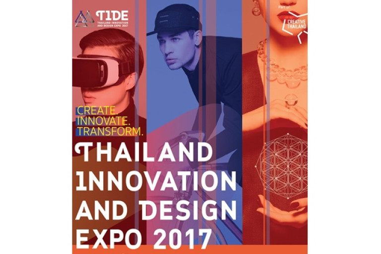 กรมส่งเสริมการค้าระหว่างประเทศ กระทรวงพาณิชย์ ขอเชิญผู้สนใจทั้งในและต่างประเทศ ร่วม งาน Thailand Innovation and Design Expo 2017 (T.I.D.E 2017) ภายใต้แนวคิด CREATE INNOVATE TRANSFORM งานแสดงสินค้านวัตกรรมและการออกแบบ, ผลงานที่เป็นมิตรกับสิ่งแวดล้อม ผลงานที่ได้รับรางวัลและเครื่อง หมายรับรองจากหน่วยงานภาครัฐ และเอกชนในด้านนวัตกรรมและการออกแบบของไทย
